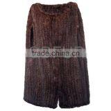 QD80557 Black Brown Knit Mink Fur Long Vest Gilet With Bigger Armhole