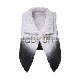 Fashion Dress for Woman New Ombre Color Knit Real Rabbit Fur Vest With Raccoon Fur Collar