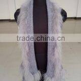 QDMJ006 Lady Clothes Long Knit Rabbit Fur Vest With Raccoon Dog Fur Collar For Women Clothing