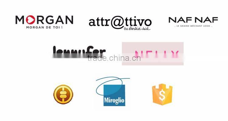 Our market has expanded into more than 50 countries and regions, such as Brazil, France, Greece, Mexico, Russia, Switzerland, USA and so on. After cooperating with many famous brands, like Zazine, Morgan, Jennyfer, Nelly, Miroglio, Attrattivo, Naf Naf, Cache-Cache, F21, we have got the certificate from SGS for clothing, which justifies our high quality of clothing products.