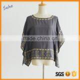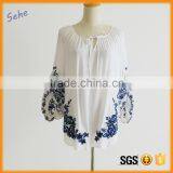 Hot Selling Blue Ethnic Embroider White New Models Blouses Loose
