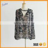 Chiffon Cutting Deep v Neck Fashion Blouse Middle Aged Women