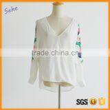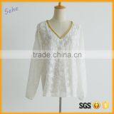 Sequin v Neck White Lace Long Sleeve Spring Autumn Blouse Supplier's Choice
