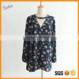 Ladies Navy Blue Long Sleeve Dry Fit Flower Print Autumn Blouse Supplier's Choice