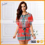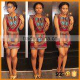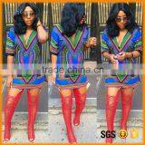 in Stock Sexy Open v Neck African Printing Sleeveless Dashiki Short Dress