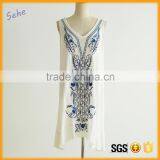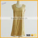 Latest Design Rayon Pleated Sleeveless Embroider Women Casual One Piece Dress