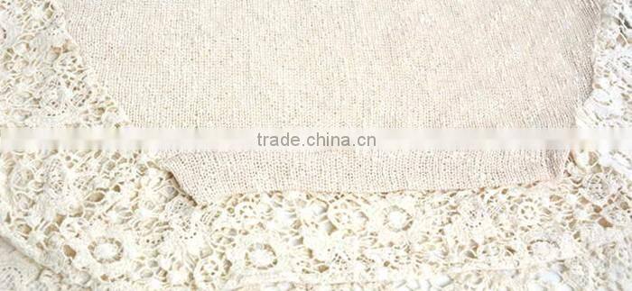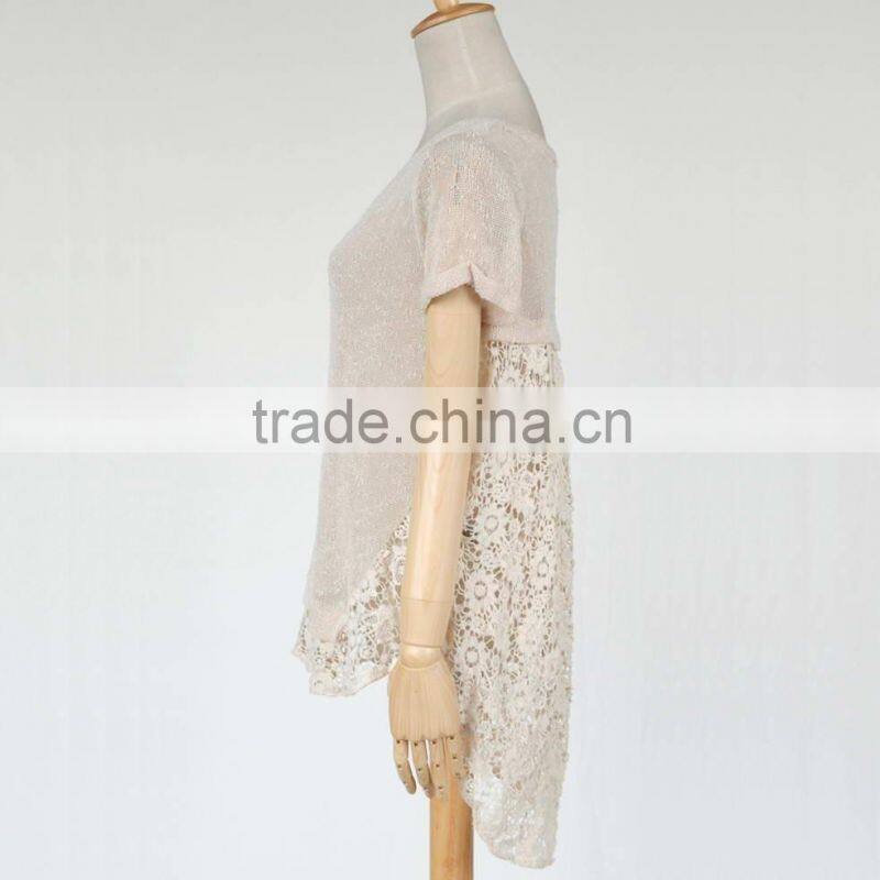Side of 2016 autumn short sleeve pullover lace bottom sweaters for lady