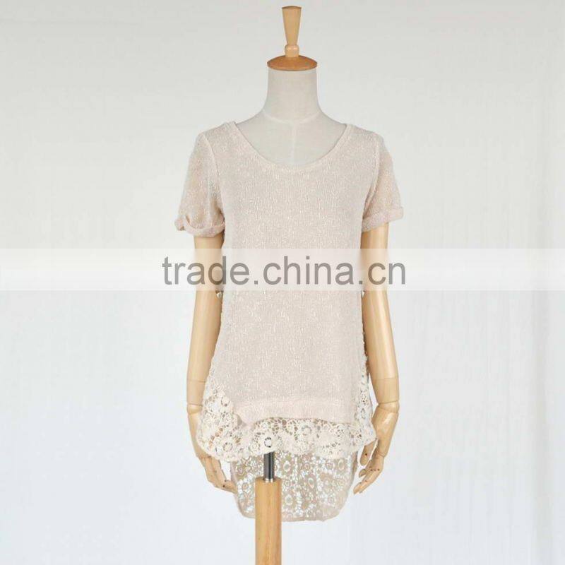 2016 autumn short sleeve pullover lace bottom sweaters for lady