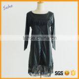 Autumn Fashionable Long PU New Model Women Dress Leather Tassel Dress Cheap Supplier's Choice