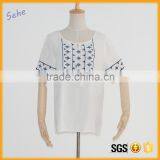 Ladies Short Sleeve Embroidered Casual Blouses for Fat Women Summer Supplier's Choice