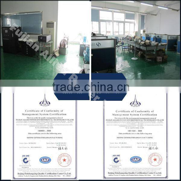 Allied Power En Tech Co.,Ltd founded sincere 2004. We main R&D and produce 10g/h to 50Kg/h ozone generators, high frequency ozone generator power supply and ozonated water machines. Our ozone generator technologies as similar as Wedeco. Our ozone generators adpot medium dielectric barrier corona discharge (DBCD) technology, quartz glass tubes and SS304 tubes as dielectric medium. High dielectic constant could ensure the ozone generator working stable and produce high concentration ozone. Our highest ozone generator concentration could reach 230mg/l. And our ozonated water machine could produce 10ppm ozonated water. By the way, We are also the only one who can produce unit high frequency invertor over 250KW and highest frequency could reach 30KHZ. We cater to diversified industries and applications, which include drinking water treatment, sewage treatment, swimming pools, public fields in hospitals, pharmaceutical factory, paper making for pulp bleaching, printing and dyeing, tower cooling water, ozonated olive oil and essential oil, waste gas odor removal,food and beverage water and air purification etc.