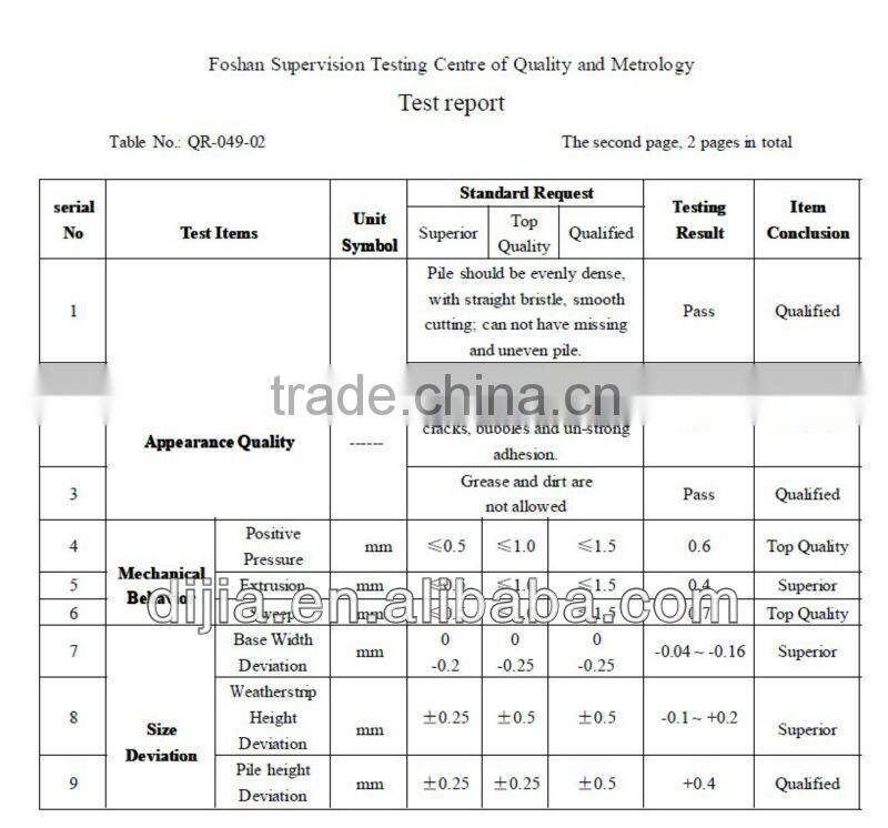 Xingguo Dijia Construction Decoration Material Co., Ltd, with primitive name Xingguo Haodijia Decoration Material Factory, is a specialized manufacturer of all kinds of pile weather stripping for doors and windows and double faced adhesive tape. Our company, established in 2004, is located in A District, Hongmen Economic Development Zone, Xingguo, covering an area of 5000 square meters. We have advanced equipment and strong technical capability. We keep updating and innovating production techniques. We have developed and manufactured a variety of special pile weather stripping. Relying on superior quality and reasonable prices, we have set up a complete sales network throughout China. In addition, our quality products have been praised by National Building and Decorative Materials Association. Our products have obtained National patents. We follow the spirit of "Trying our best to make the best products, Customer First, Integrity in the highest". We are pursuing the goal of "creating an international brand". Having put considerable efforts on the continuous improvement of quality control procedures and enhancement of scientific management, we are advancing into the global markets drastically. Providing quality products, excellent services, competitive prices and prompt delivery, we are now looking forward to even greater cooperation with overseas customers based on mutual benefits. Please feel free to contact us for more details.