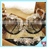 Hot Selling Red Cup Deep V Crystal Black Lace Bra