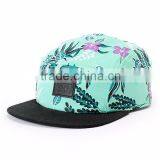 Custom 6 Panel Flat Brim Snapback/floral All Over Green Snapback/ Customize Metal Logo Snapback Hats With Leather Brim