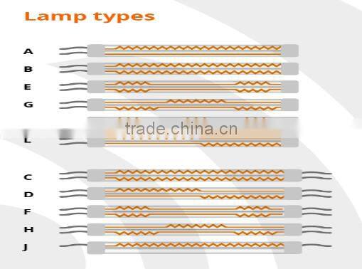 Twin tube lamps are made of high quality quartz and were designed by Yuhang engineers to yield high radiation power as well as providing excellent mechanical stability, They are available as clear or coated with Gold coatings