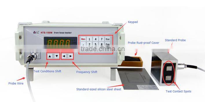 ATS-100M adopts singlechip technique together with A/D & D/A, sine-wave excitation power source embedded, directly display iron loss Ps(W/KG).