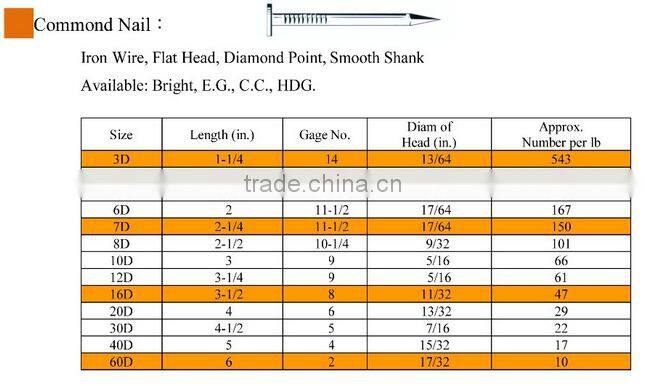 Parts Of Iron Nails & Steel Nails Below:(you can email me to ask more sizes catelogue)