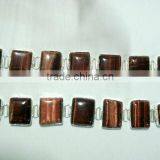 Red Tiger Eye Gemstone Metal Bracelet