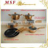 MSF-6689 12pcs Pressing Aluminum Cookware Set With Non Stick Coating Nice Champagne Painting