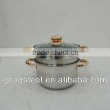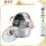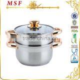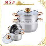 18CM Classical Stainless Steel 2 Layer Steam Pot With Gold Plating Handle & Knob MSF-3179