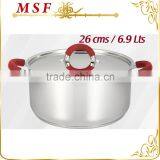 MSF-3997 Stainless Steel Stock Pot High Soup Stock Pot 30*24cm Casserole With Heat Resistant Red Silicon Handles