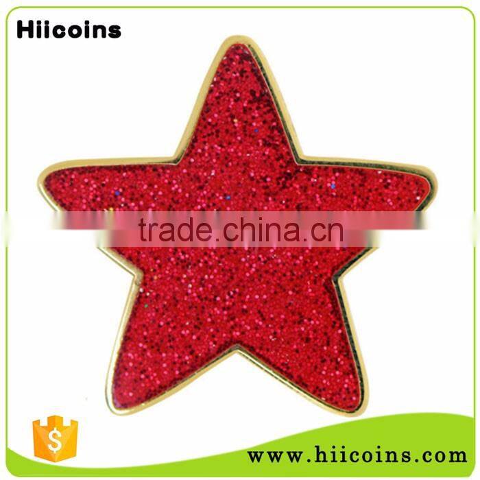 Made In China Star Shaped Lapel Pin Badge With Glitter