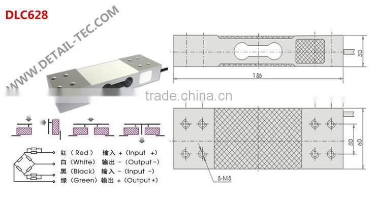 Model: DLC628 Category: single point load cell Range:50kg,60kg,75kg,100kg,150kg,200kg,250kg,300kg,500kg,600kg,750kg Dimension: 186*60*30mm Material: Alloy aluminum Application: Platform scale, pricing scale, electronic scale, kitchen scale, postal scale Characteristic: platform weighing sensor, 750kg weighing sensor | |||