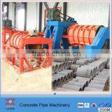 This machine uses the Roller to support the concrete pipe mould, and produce the roller force to concrete in the mould. When the roller rotate at a high speed, the concrete in the mould will spread in the inner wall of the pipe mould and form a cement pipe with the centrifugal force, and when the mould with the inner concrete pass on the roller, the concrete between the mould and the roller will be compacted solid to form a pipe.