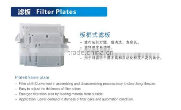 Filter plates adopt pp material to press mould, and the design of filtration surface adopts special channel, smooth and without any blockage.