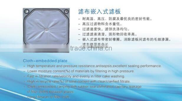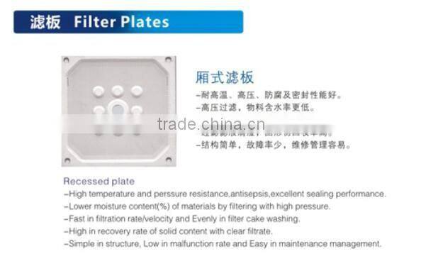The maximum feeding pressure of the filter plate is 1.6Mpa. With the properties of high temperature and high pressure resistance, antisepsis and airtight, short filtering cycle, good processing effect and low humidity of the cake .