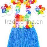 Flower Decoration Blue Color Hawaii Style Dress Pretty Design Hawaii Straw Skirt BWG-2082