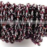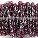 3 Feet Natural Garnet Smooth Rondelle Rosary Style Wire Wrapped Beaded Chain 925 Silver Plated Jewelry Making Beads