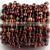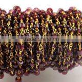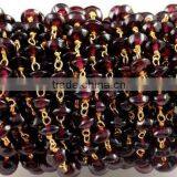 3 Feet Natural Garnet Smooth Rondelle Rosary Style Wire Wrapped Beaded Chain 24k Gold Plated Jewelry Making Beads