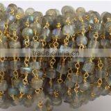 3 Feet Natural Blue Fire Labradorite Heishi Shape Smooth Rosary Style Wire Wrapped Beaded Chain 24k Gold Plated