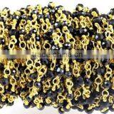 3 Feet Natural Black Spinel 2mm Faceted Rondelle Rosary Style Wire Wrapped Beaded Chain 24k Gold Plated