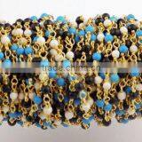 5 Feet Multi Mix Gemstone 2mm Smooth Rondelle Rosary Style Wire Wrapped Beaded Chain 24k Gold Plated Jewelry Making Bead