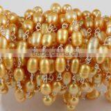 3 Feet Genuine Bronze Freshwater Pearl Rice Shape Tiny Pearled Rosary Style Beaded Chain 24k Gold Plated