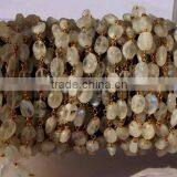 10 Feet Natural Rainbow Moonstone Smooth Oval Beaded Chain, Gold Plated Wire Wrapped Chain, Handmade Beaded Chain
