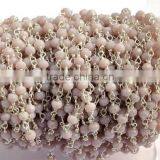 10 Feet Red Chalcedony Rosary Style Silver Beaded Chain, Wire Wrapped Chain, Handmade Beaded Chain, Linked Chain,