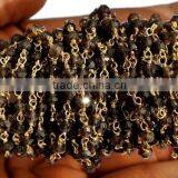 10 Feet Gold Plated Smoky Quartz Rosary Style Beaded Chain, Wire Wrapped Gemstone Linked Chain, Handmade Beaded Chain