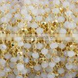 5 Feet Natural Rainbow Moonstone And Gold Pyrite Faceted Rondelle Gemstone Rosary Style Wire Wrapped Beaded Chain