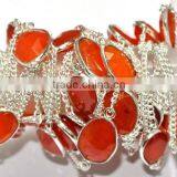 3 Feet Faceted Carnelian Bezel Set Chain - Silver Plated Gemstone Connector Chain - 12 - 15mm Bezel Stone Chain