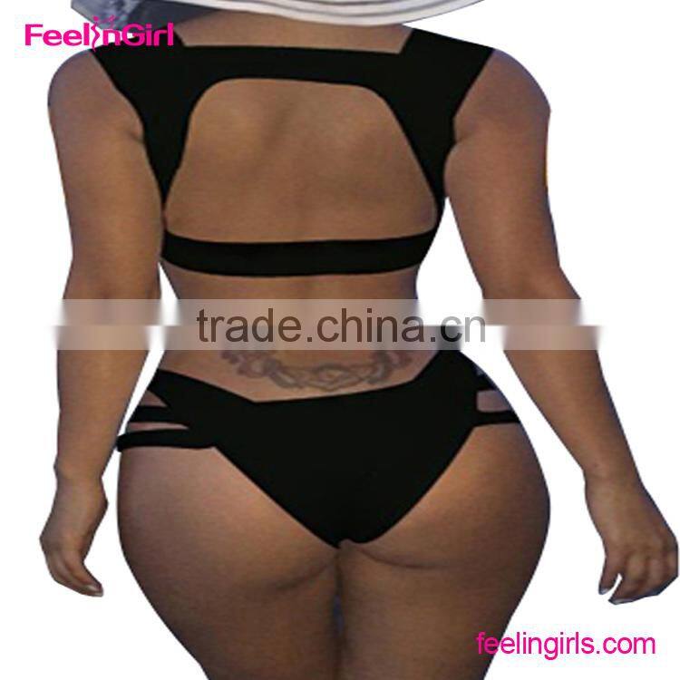 - Women's 2 Piece Bikini Set Back Braided Straps with Reversible Bottom