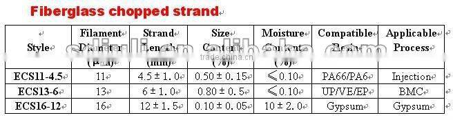 chopped strand for polyamide(PA6,PA66) with property:good mechanical properties.