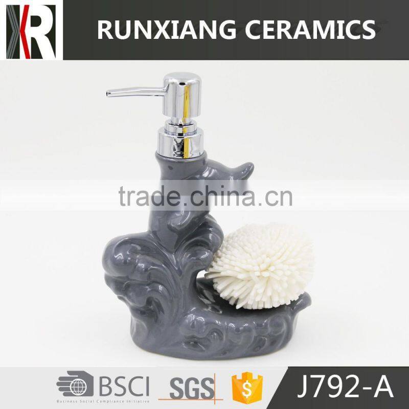 Unique New Design Glazed Grey Dolphin With Sponge Ceramic Soap Dispenser Supplier's Choice
