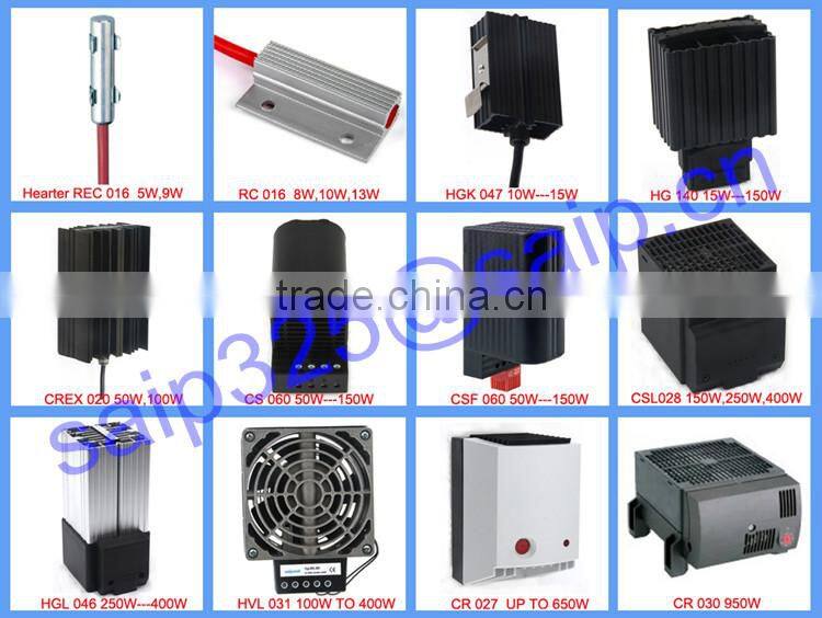 CR 030 Heater: The compact high performance fan heater prevents formation of condensation and provides an evenly distributed interior air temperature in enclosures with electric / electronic components. The plastic enclosure provides double insulation and acts as protection against contact. The fan heater is available with optional integrated thermostat for temperature control. The CS 130 was designed as a stationary unit for wall fixing. For fixing on the bottom of the enclosure the fan heater CS 030 is recommended .