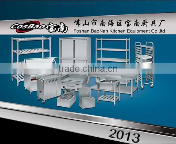 COSBAO provides a varitey of kitchen equipments such as kitchen cabinet, sink bench, worktable, bain-marie, service trolley, deck oven, display warmer, barbecue grill, salamander, pasta cooker, griddle, deep fat fryer etc. since 1998, 80% of our products exported overseas like America, England, France, Germany, Nederland, Spain, Russia, Soudi Arabia, Korea and so on.
