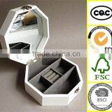 Wholesale New Design Wood Box White Hexagon Mirror Jewelry Case