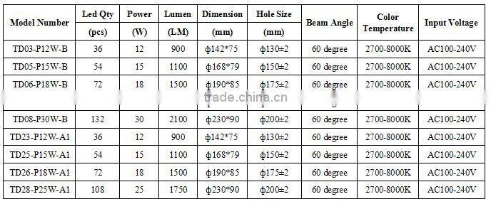2015 New Design 18w Smd Led Downlight With 165mm Cut Out 30w Saa Led Downlight