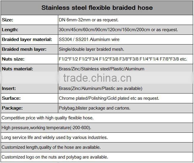 Name: high pressure stainless steel flexible braided hose/Steel wire knitted brass gas hose/steel plumbing basin sink inlet hose